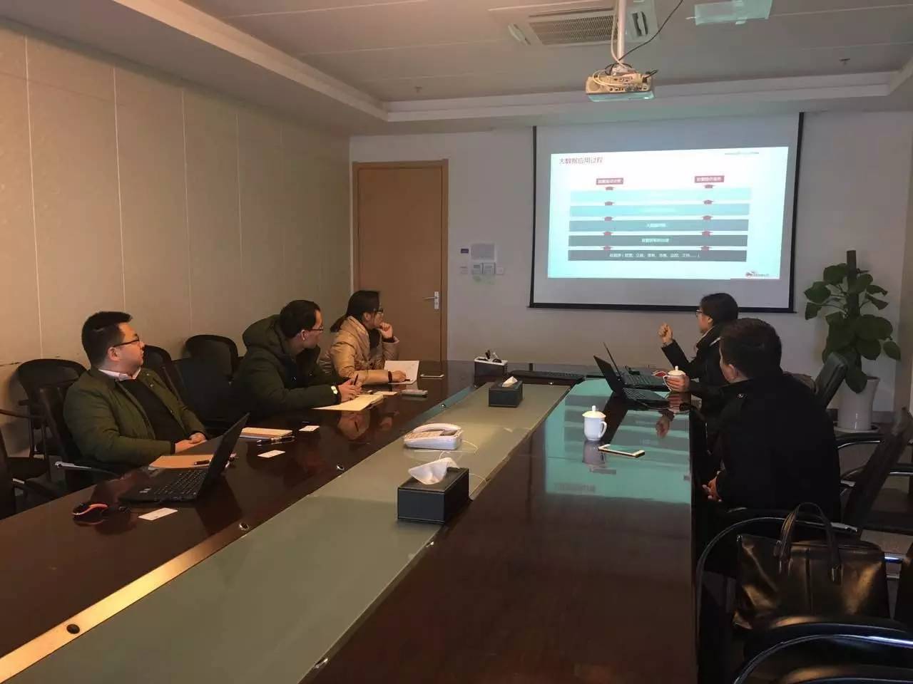会议中大数据咨询顾问李圣鑫详细介绍了大数据交换汇集平台、大数据存储&计算平台、大数据智能分析平台、大数据可视化平台、大数据治理平台等四方伟业的核心产品。同时,双方在各自的行业领域就专业特长进行了深入的交流,期待后续能在大数据方面有更加深入的合作。